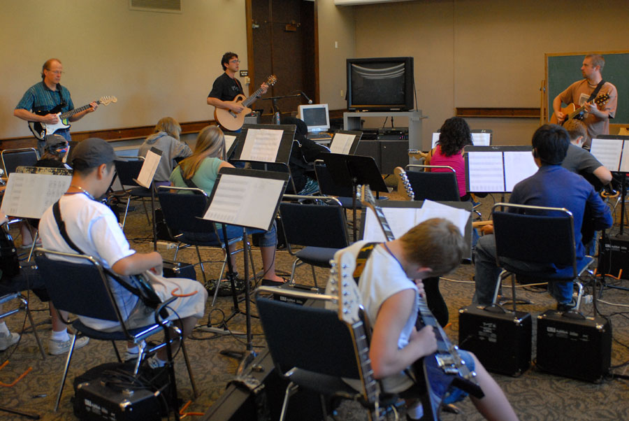 This is from the 2007 Seattle Center Academy guitar class. Mark is standing on the far left. Photo by Julia Laranang.